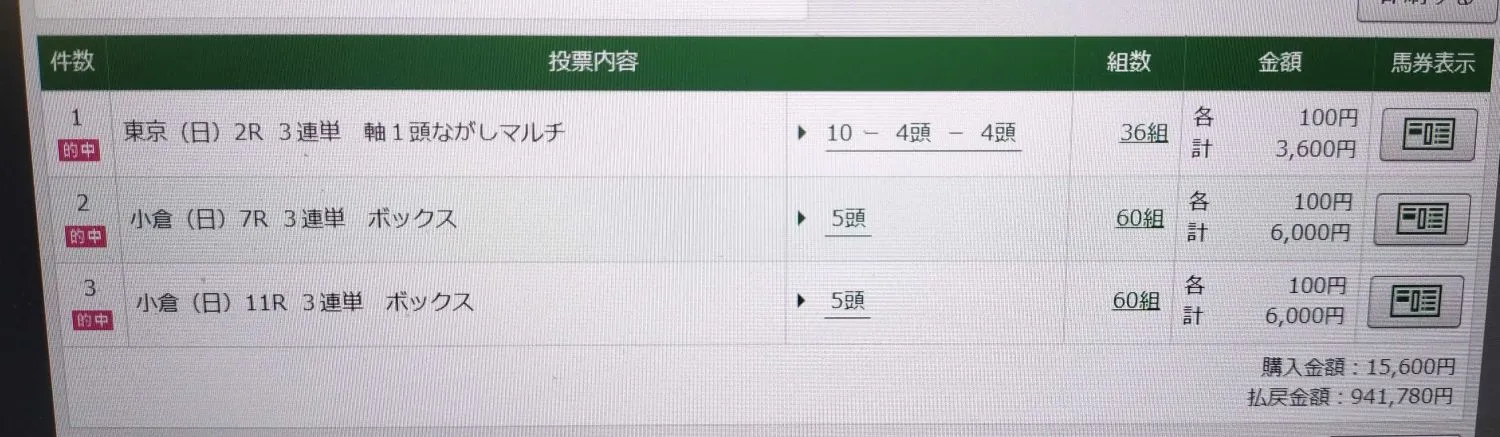 ⑧軸で小倉牝馬ステークス3連単万馬券36,960円取れました。 1点500円で馬券買っていたから一撃18万4800円獲得、地味に荒れたから的中嬉しすぎます。