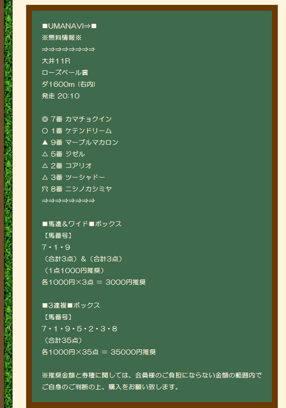 約束された万馬券の買い目が届く!