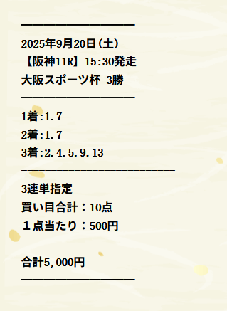 25.9倍いい配当の3連複いただけました~! このおかげで毎日王冠で遊べました! 京都大賞典にしないでよかったです笑