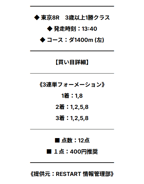 単勝&馬単で無料予想買いました、単勝千円、馬単3点合計4千円の馬券代が8万7200円になりました! 土日の無料予想期待しています!!