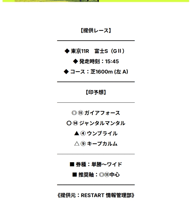 土日の無料予想期待しています!!