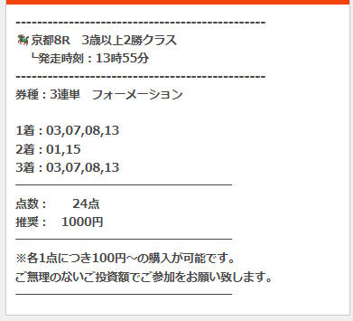 京都大賞典の前に地方競馬の無料買い目で4万4100円的中は嬉しすぎる、棚からぼたもちってやつかな~